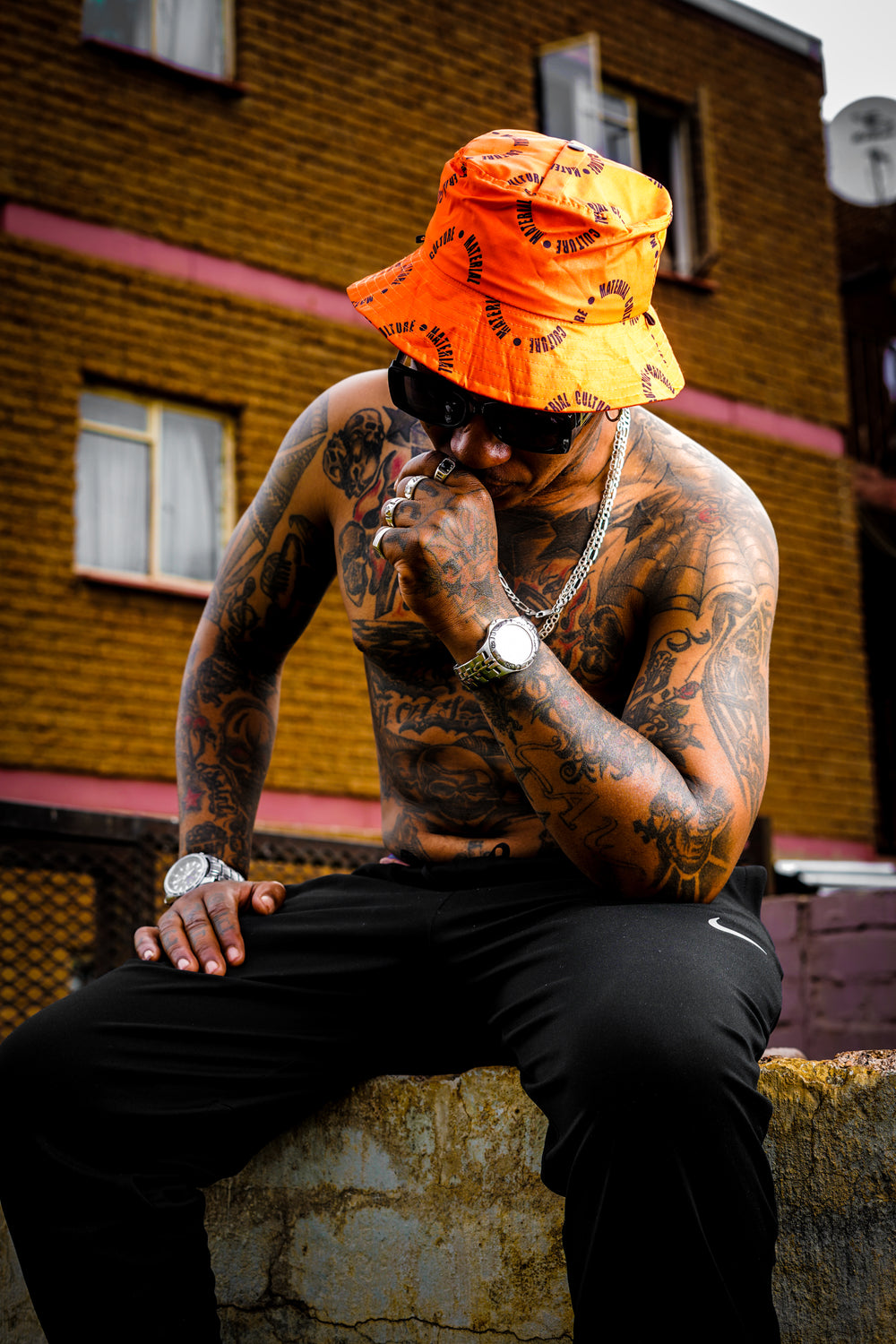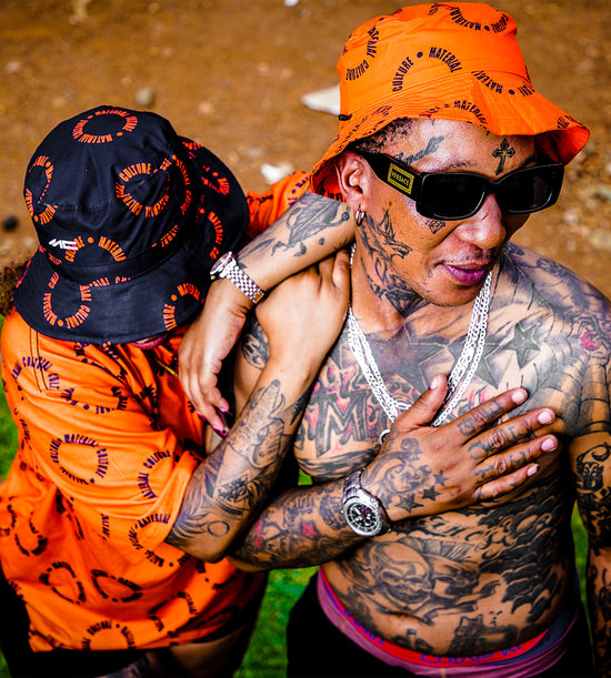 This lightweight bucket hat features comfortable fabric and multiple distinctive Material Culture logos printed throughout. This versatile bucket hat effortlessly elevates any outfit, no matter the occasion. This bucket hat is a true reflection of South African culture and craftsmanship,...